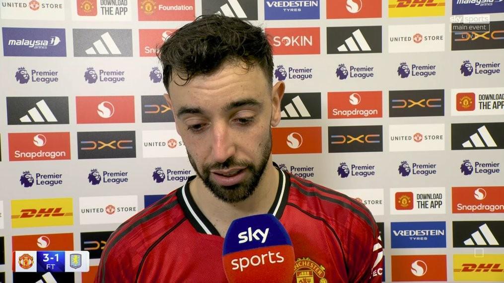 英超第30轮,曼联主场3-1击败维拉,此役送出两次助攻的曼联队长布鲁诺-费尔南德斯赛后接受了天空体育的采访。